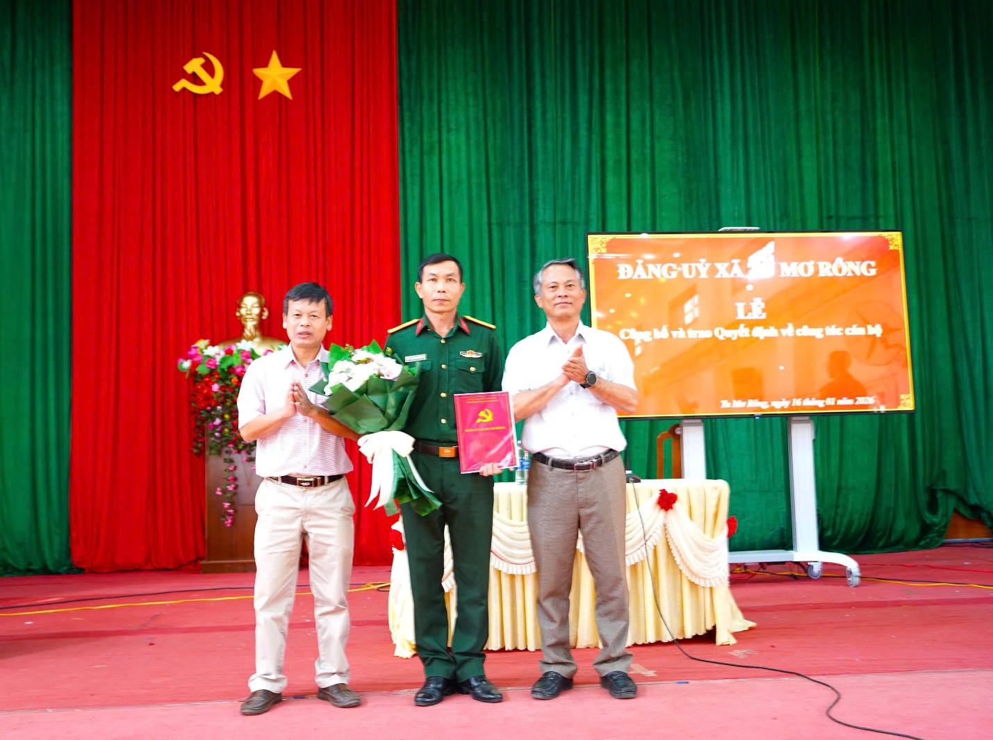 Tại buổi lễ, đại diện lãnh đạo Ban Xây dựng Đảng xã đã công bố Quyết định số 365 ngày 13-01-2026 của Ban Thường vụ Tỉnh ủy về chỉ định bổ sung Ban Thường vụ Đảng ủy, Ban Chấp hành Đảng bộ xã Tu Mơ Rông, nhiệm kỳ 2025 – 2030 đối với đồng chí Trung tá Nguyễn Thành Vinh, giữ chức vụ Chỉ huy trưởng Ban Chỉ huy Quân sự xã Tu Mơ Rông.