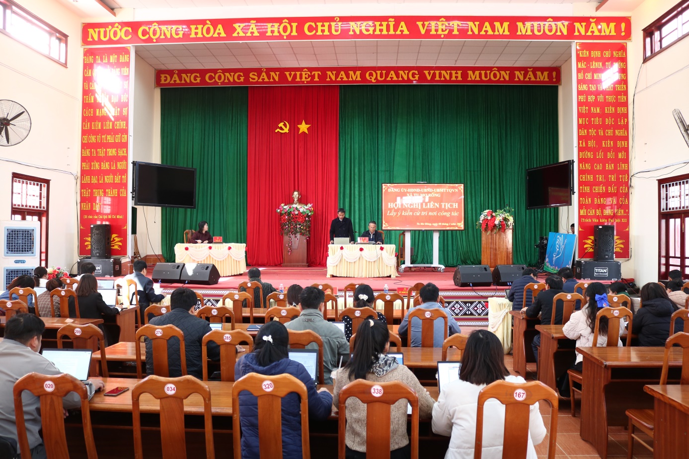 Trên cơ sở thảo luận, hội nghị đã tiến hành biểu quyết tín nhiệm bằng hình thức bỏ phiếu đối với 01 người được dự kiến giới thiệu ứng cử đại biểu HĐND tỉnh và 10 người được dự kiến giới thiệu ứng cử đại biểu HĐND xã. Kết quả, 100% cử tri tham dự hội nghị thống nhất, tín nhiệm cao đối với các đồng chí được giới thiệu.