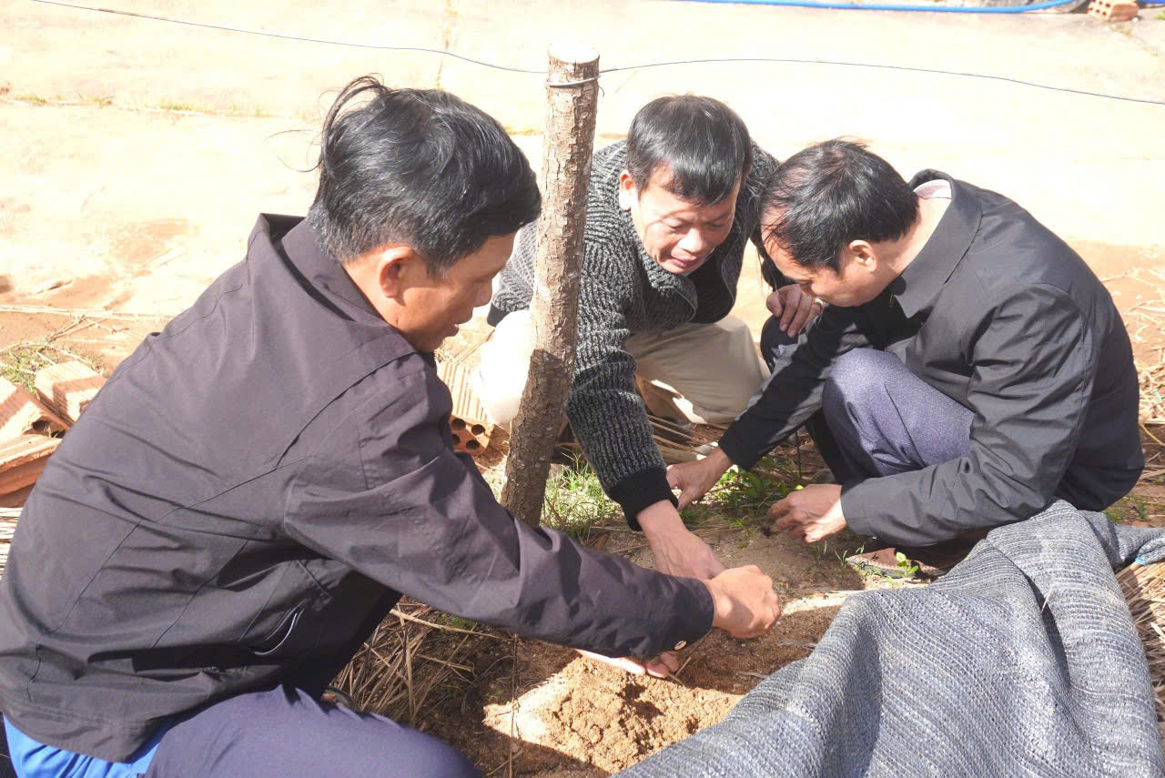 Chiều ngày 10/12, đồng chí Trần Quốc Huy - Phó Bí thư Đảng uỷ, Chủ tịch UBND xã đã đi kiểm tra thực tế việc triển khai mô hình vườn ươm giống cà phê tại các thôn trên địa bàn xã.